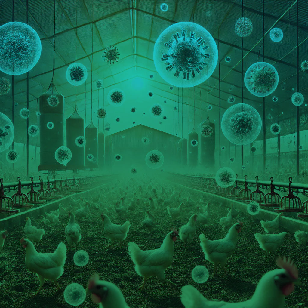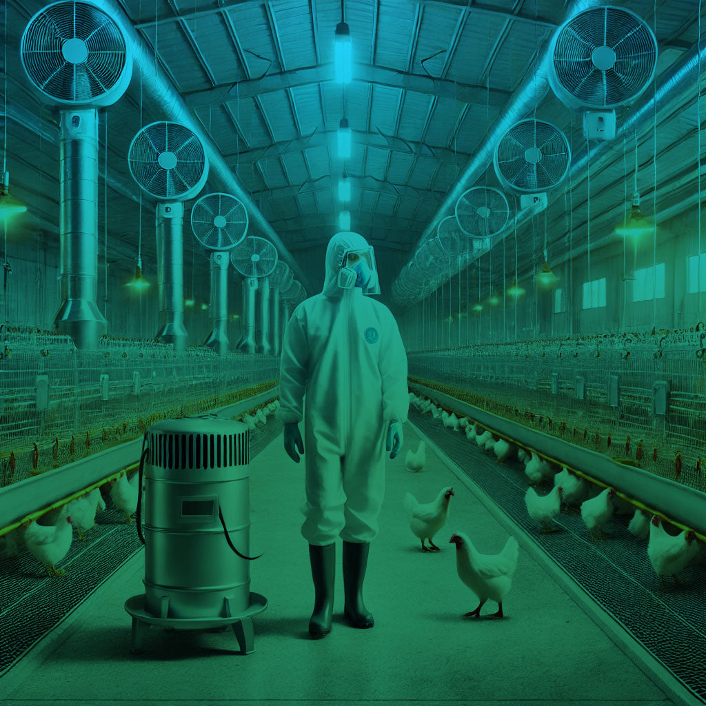 Poultry houses are susceptible to airborne viruses, bacteria, and fungal spores, which can quickly spread among birds, leading to serious diseases such as avian influenza, Newcastle disease, and respiratory infections.